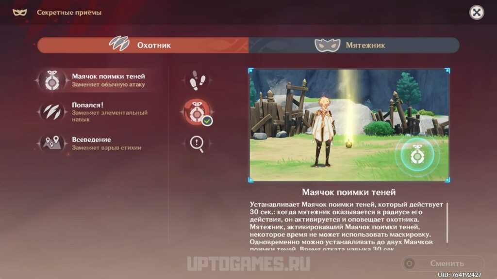 - Попался! — снимает маскировку и ловит мятежника рядом. Главный и единственный перк для поимки.