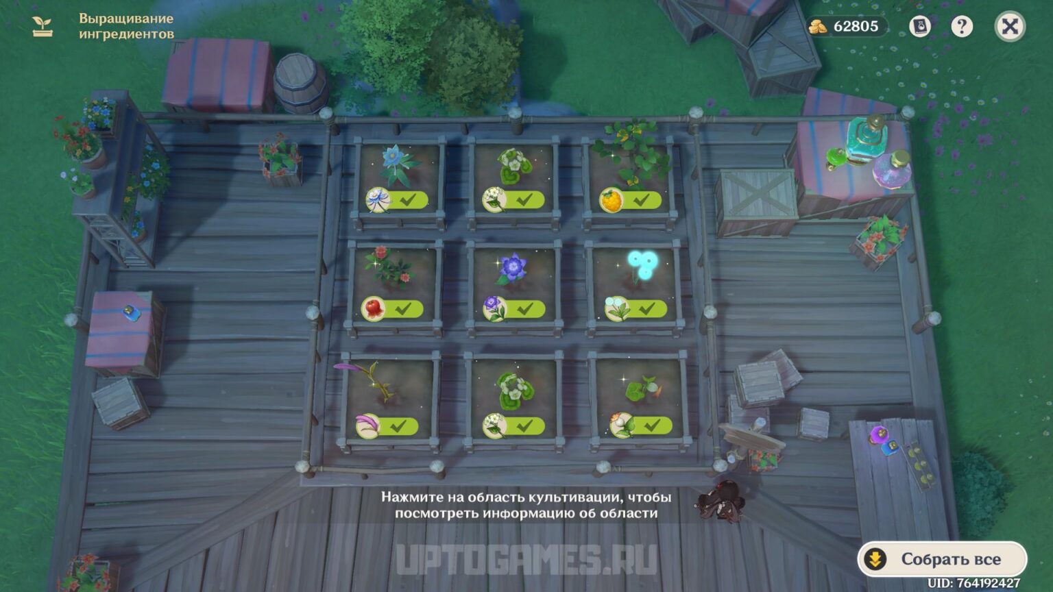 Все процессы по выращиванию ингредиентов: Посадка, Сбор и Смена растений осуществляются в зоне с грядками. Она доступна в области события «Алхимический прорыв».