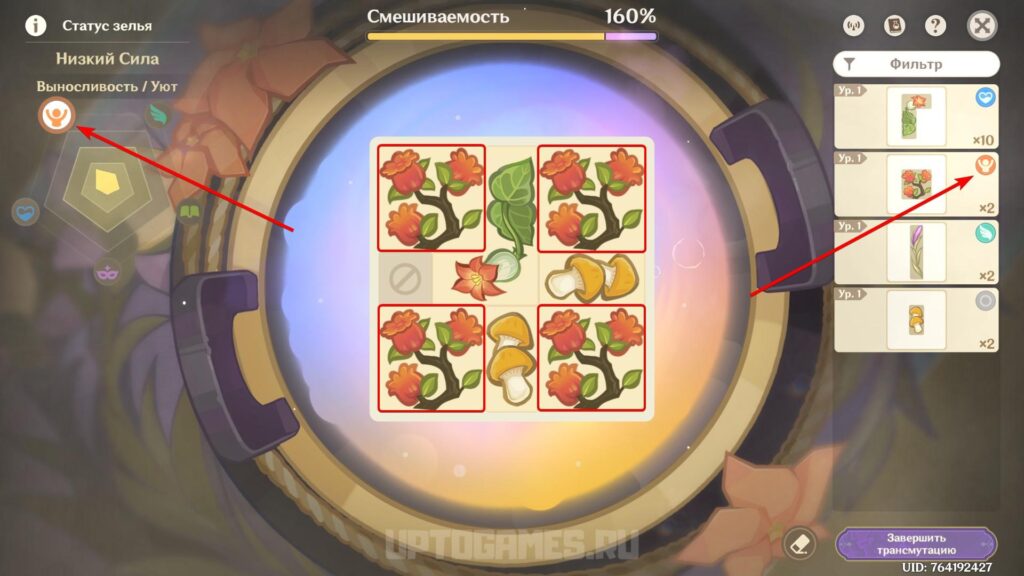 Обычная трансмутация — следующая и одна из главных механик в событии. В данном этапе нам предстоит складывать из взращенных диковинок зелья, которые позже отправятся на прилавок нашего магазинчика.