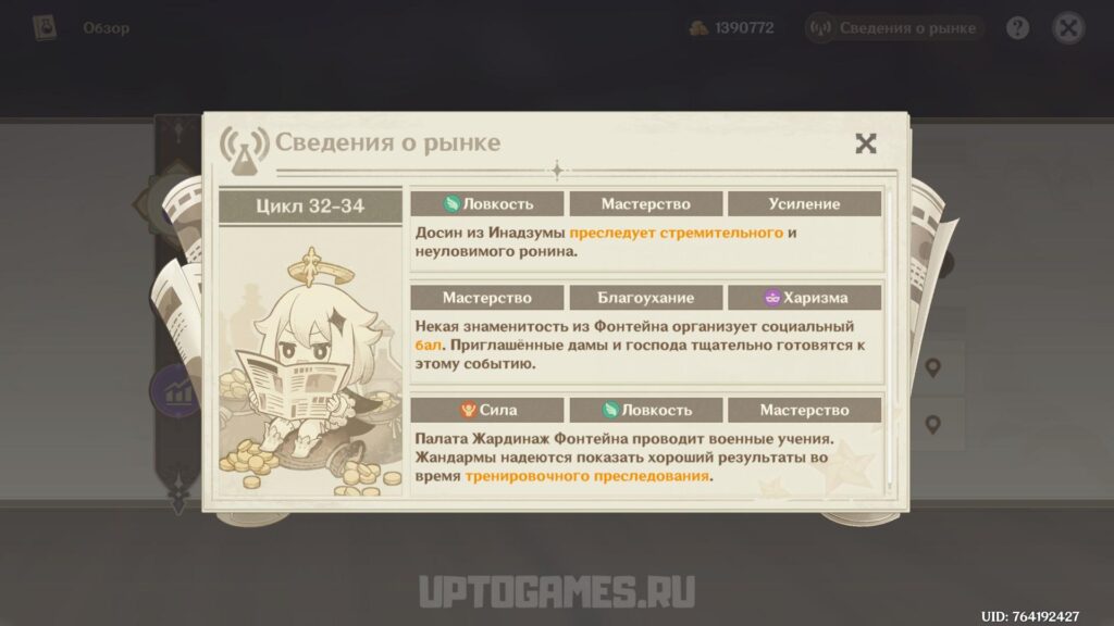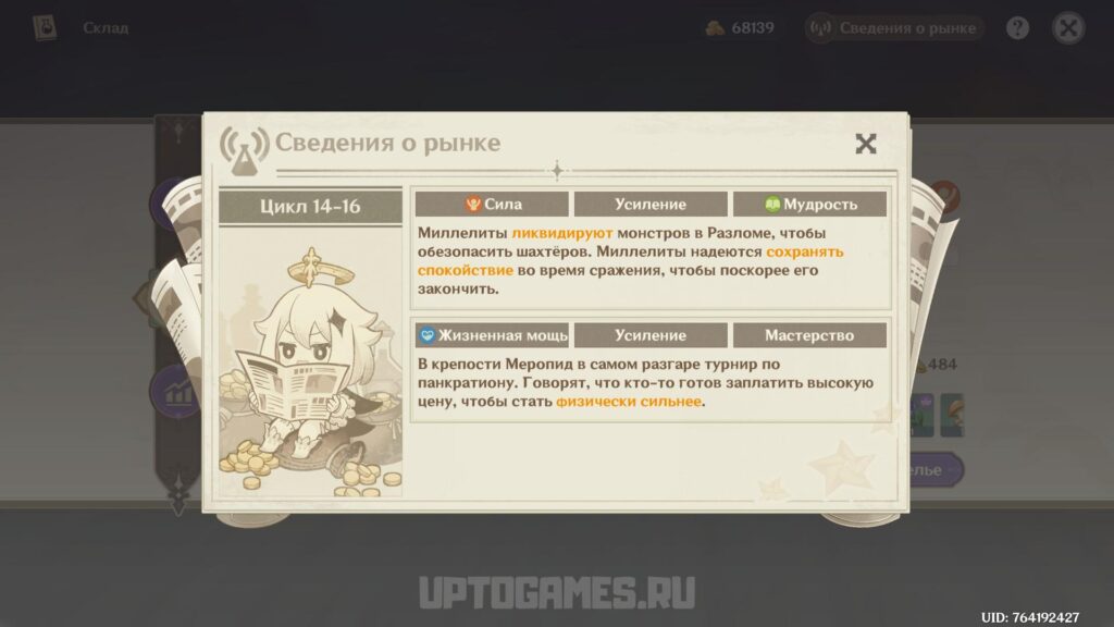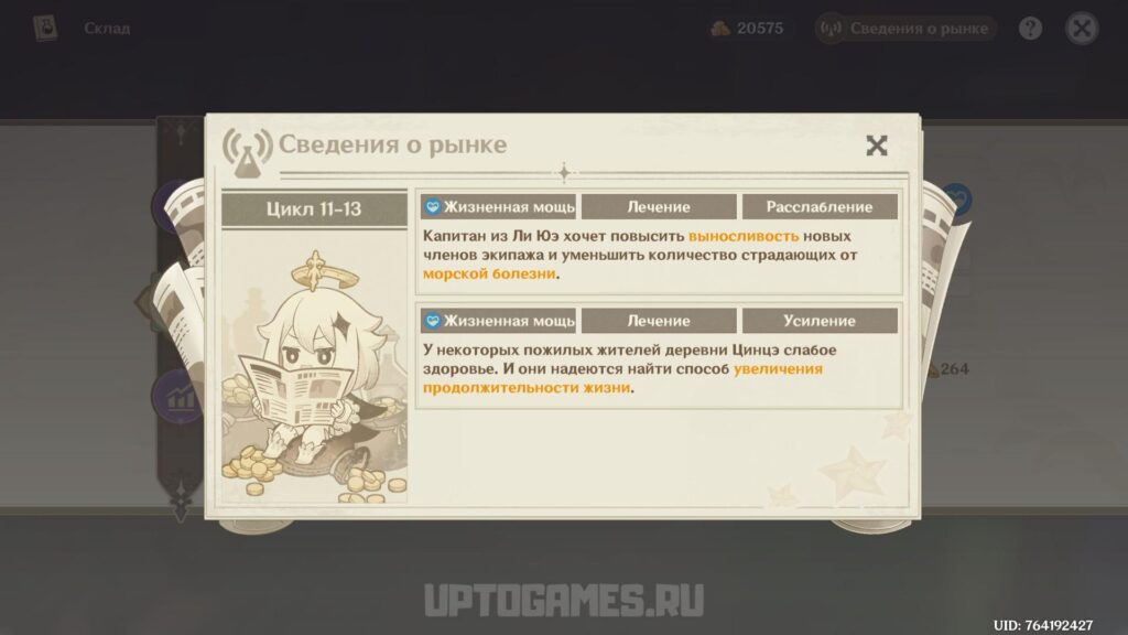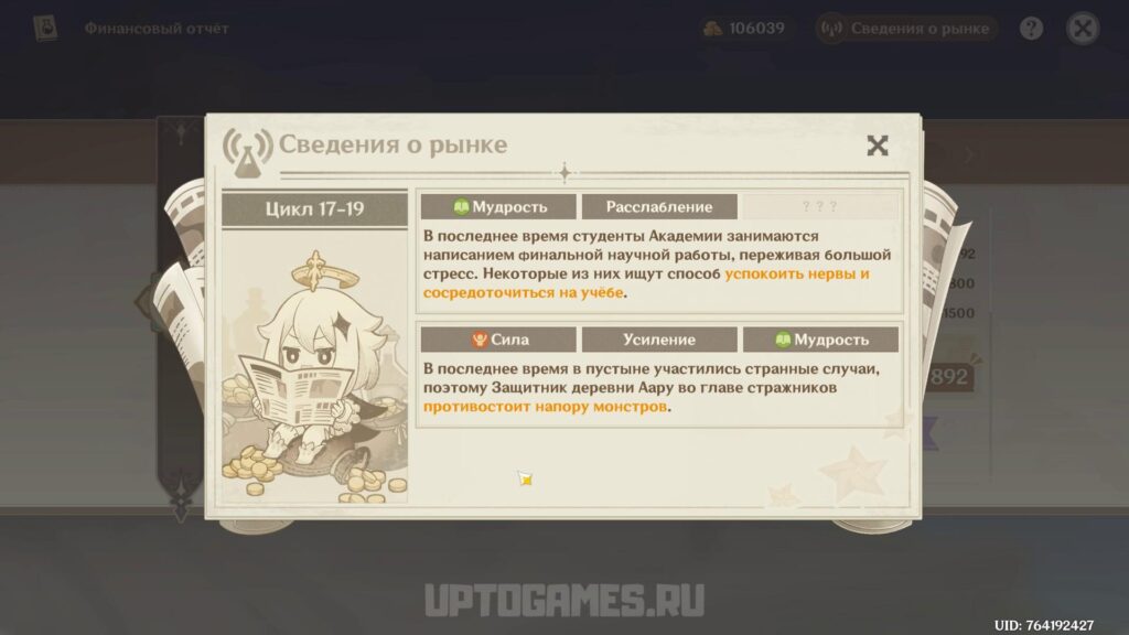 Как выглядят Сведения о рынке в ивенте «Алхимический прорыв» в Genshin Impact