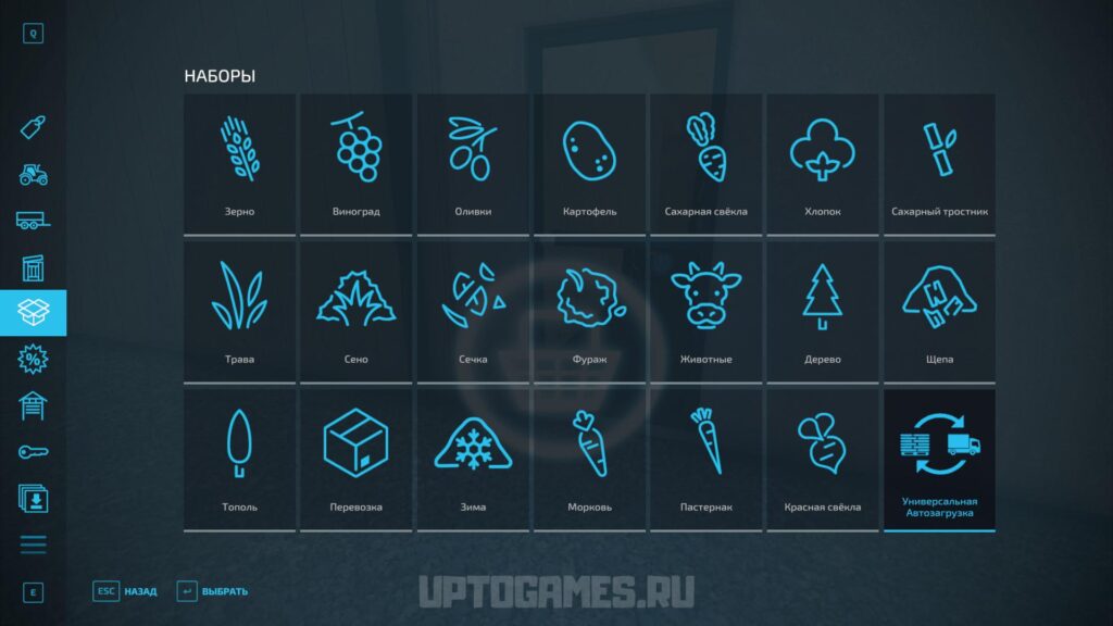 - Выберете нужный предмет для погрузки (по умолчанию выбрано все) с помощью кнопки T или Y.