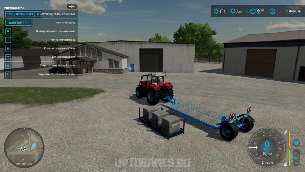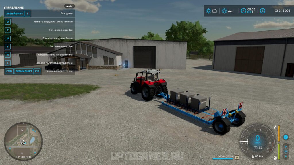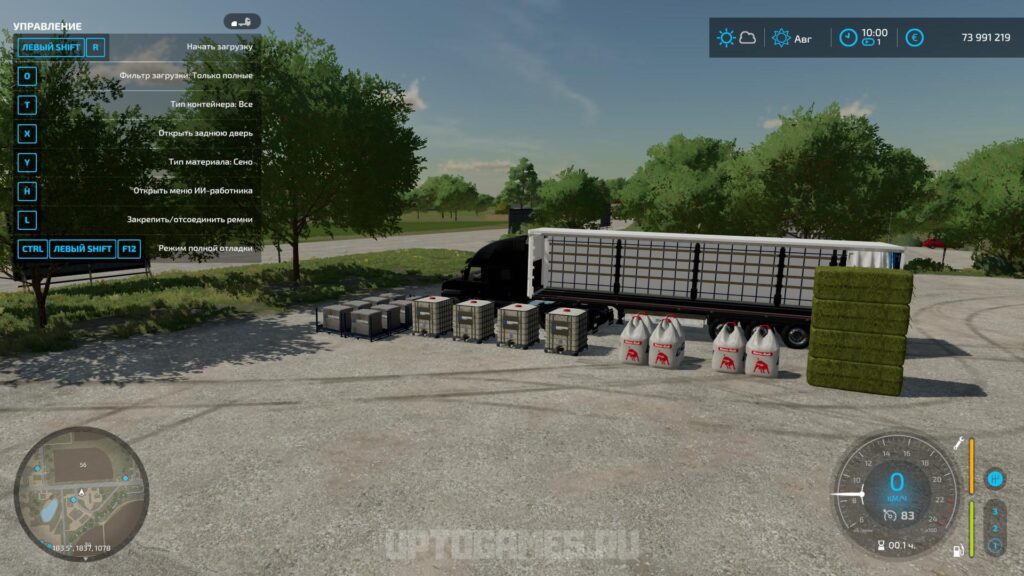 - Если прицеп закрыт — откройте его кнопкой X или Z (зависит от прицепа).