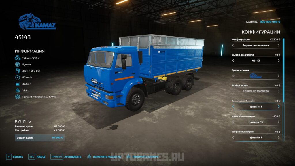- Выбор колес, зеркал, козырька и облицовки кабины