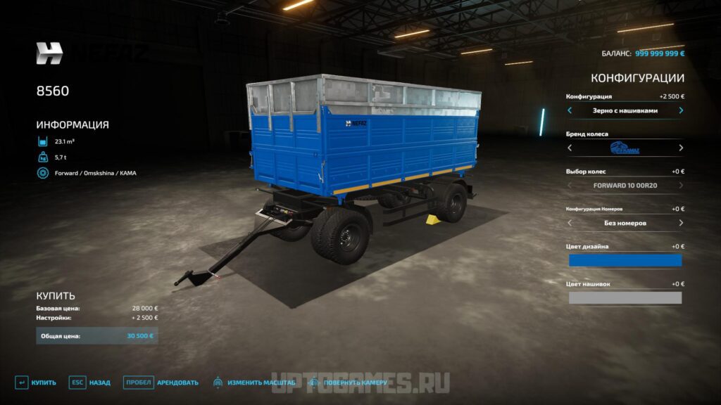 Характеристики прицепа НЕФАЗ 8560 в Farming Simulator 2022