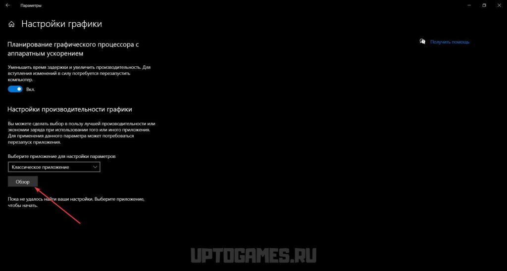 - В открывшемся окне выберите «Настройки производительности графики» -> «Обзор».